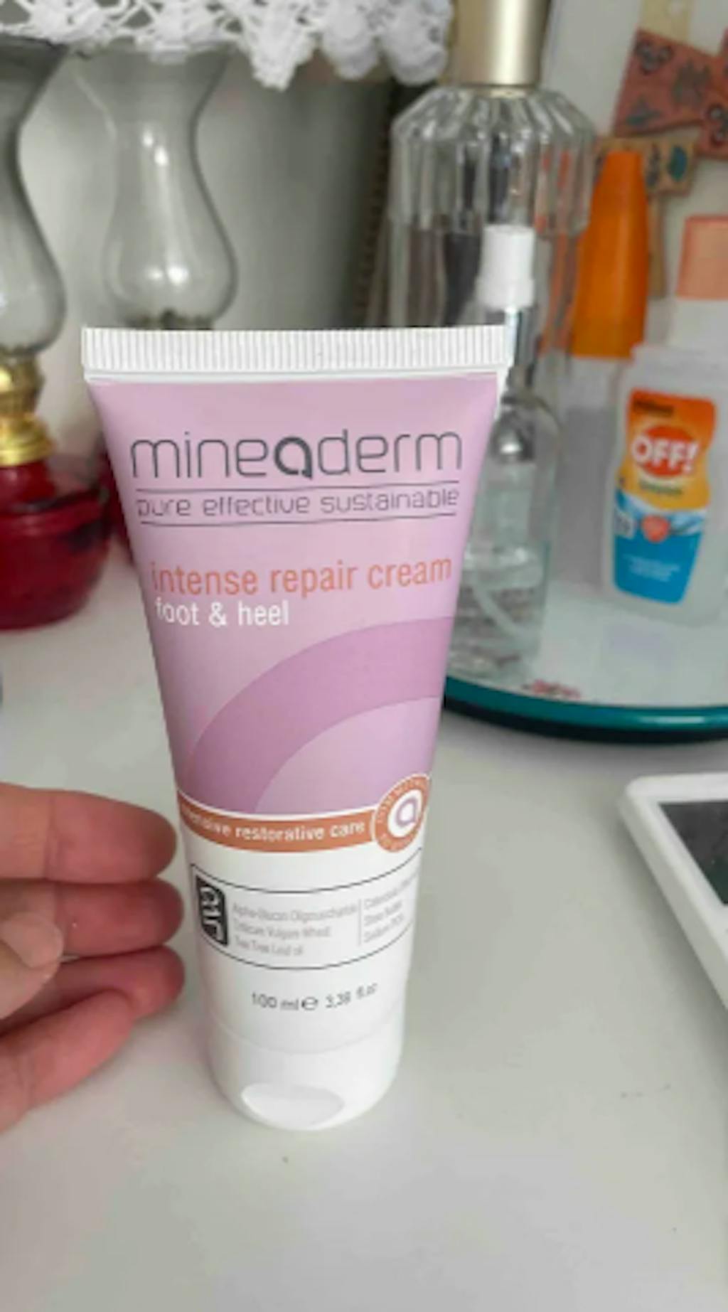 Mineaderm Intense Repair Cream Foot & Heel is a herbal and vegan care cream with powerful ingredients like Alpha-Glucan Oligosaccharide, Shea Butter, Triticum Vulgare (wheat), Tea Tree Oil, Calendula, and Sodium PCA. It softens and rebuilds dry, cracked, and hardened foot and heel skin, helping to maintain long-term moisture levels. It provides natural moisture and nutrient support without disrupting the foot flora; the natural antibacterial and soothing properties of Tea Tree and Calendula active ingredients ensure skin comfort, convenience, and resistance to external factors. Users report a rapid reduction in heel dryness, a return to softness and comfort, and a stronger effect with cotton socks during nighttime application. It's a safe, natural, and powerful repair cream for both summer and winter, especially for those looking to restore hardened and cracked foot skin to its former health.