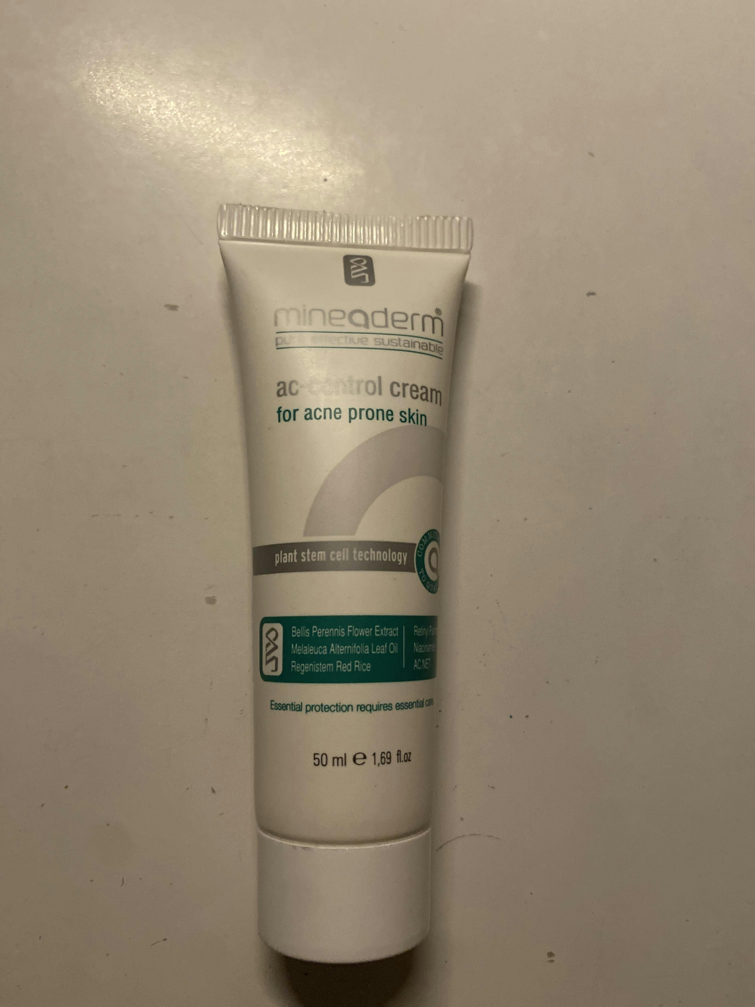 Mineaderm AC-Control Cream, kök hücre teknolojisi ile üretilmiş Oryza Sativa Callus Extract, Ac.net**, Tea Tree Leaf Oil, Belides, Multivitamin Complex, Hygroplex HHG* ve bitkisel ekstraktlar sayesinde cildin aşırı yağ salınımını dengelemeye yardımcı olur. Cildi kurutmadan ve tahriş etmeden, cildin doğal ve pürüzsüz görünümüne ulaşmasına destek olur.