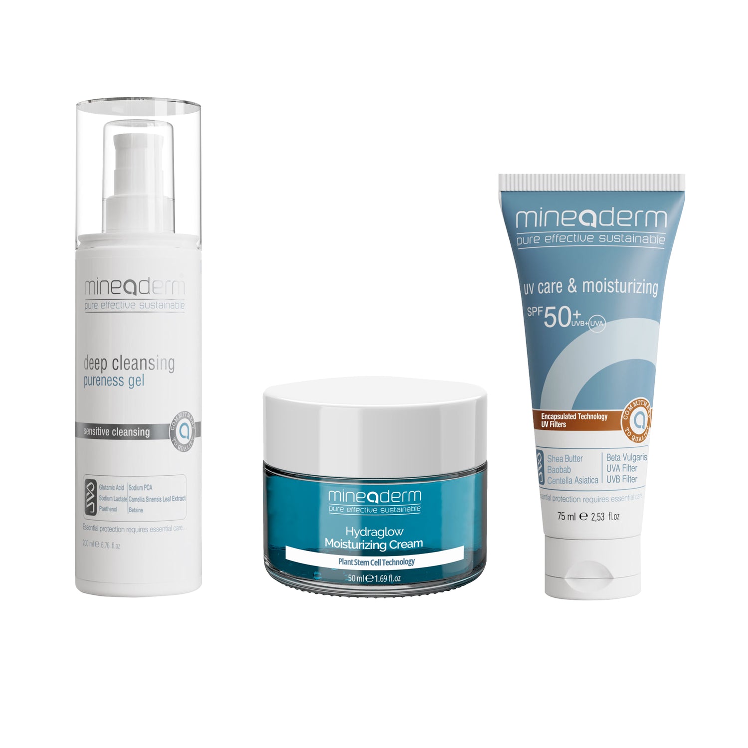 Mineaderm UV Care & Moisturizing Cream SPF 50+, hem güçlü UVA/UVB filtresiyle güneşe bağlı erken yaşlanma, leke ve cilt kuruluğunu önler hem de shea butter, baobab tohumu yağı, aloe vera ve Centella Asiatica gibi yoğun nemlendirici ve antioksidanlarla cildi gün boyu canlı tutar. Hafif ve hızlı emilen formülüyle ciltte ağırlık ve yağlılık hissi bırakmaz; günlük kullanıma, makyaj altına ve hassas ciltlere idealdir. Kullanıcılar, ürünü yaz/kış her gün güvenle kullanabildiklerini, hem koruma hem nem dengesinde kalıcı etki sağlandığını; düzenli kullanımda ciltte parlaklık, pürüzsüzlük ve leke şikayetlerinde azalma gözlemlediklerini bildiriyor. Modern cilt bakımında güvenliği, yüksek koruması ve sürdürülebilir nem desteğiyle beklentileri karşılayan UV Care & Moisturizing SPF 50+; estetik, fonksiyonel ve etik bir günlük güneş bakım alternatifidir.